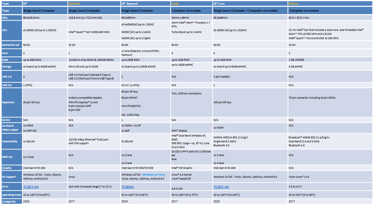 AAEON UP Squared Boards are fast, high-performance x86 maker boards based on the Intel Apollo Lake platform. Features of the UP Squared Board are multiple USB 3.0 ports, double Gigabit Ethernet, and HDMI making it ideal for solutions in the Internet of Things (IoT). The vector units image processing unit and precision timing management synchronize the CPU with the I/O, making graphic processing effortless. With a 40 Pin I/O connector, the expansion capabilities of the UP Squared go further with more possibilities.Features