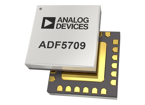 Analog Devices Inc. ADF5709 Wideband MMIC (Monolithic Microwave Integrated Circuit) VCO (Voltage Controlled Oscillator) supports an output frequency range of 9.85GHz to 20.5GHz while maintaining -83dBc/Hz phase noise at 100kHz offset without subharmonic tones. The wide frequency range and low phase noise of this device enable Phase-Locked Loop (PLL) solutions for a variety of frequency bands and limit the need for multiple narrow-band VCOs. The broad frequency coverage reduces the board design complexity and simplifies the bill of materials when designing RF and microwave applications.The ADF5709 VCO operates from a single 5V supply and consumes only 70mA of supply current, resulting in minimal power dissipation. The low power consumption of this device makes it ideal for high-performance applications with limited or no airflow. The monolithic construction of the ADF5709 VCO allows optimal output power and noise characteristics over temperature variations.