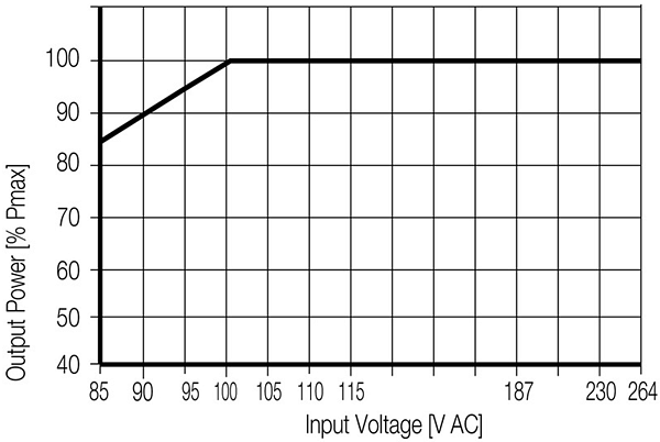 - 85VAC to 264VAC input voltage range (derating at 100VAC)